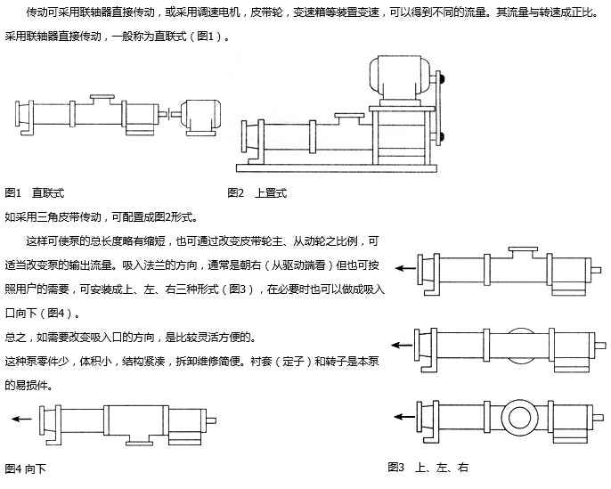 G型手轮调速无级变速单螺杆泵根据材质可分为如下三种类型: